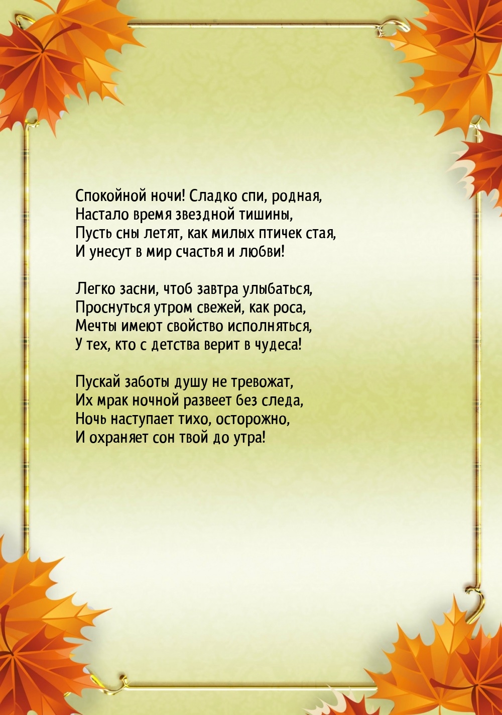 Желаю тебе спокойной осенней ночи!
